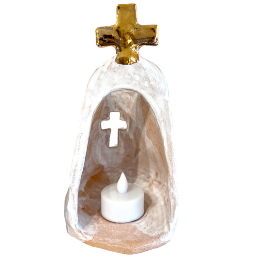 Ceramic 18 Karat Gold Cross Tea-light Alter