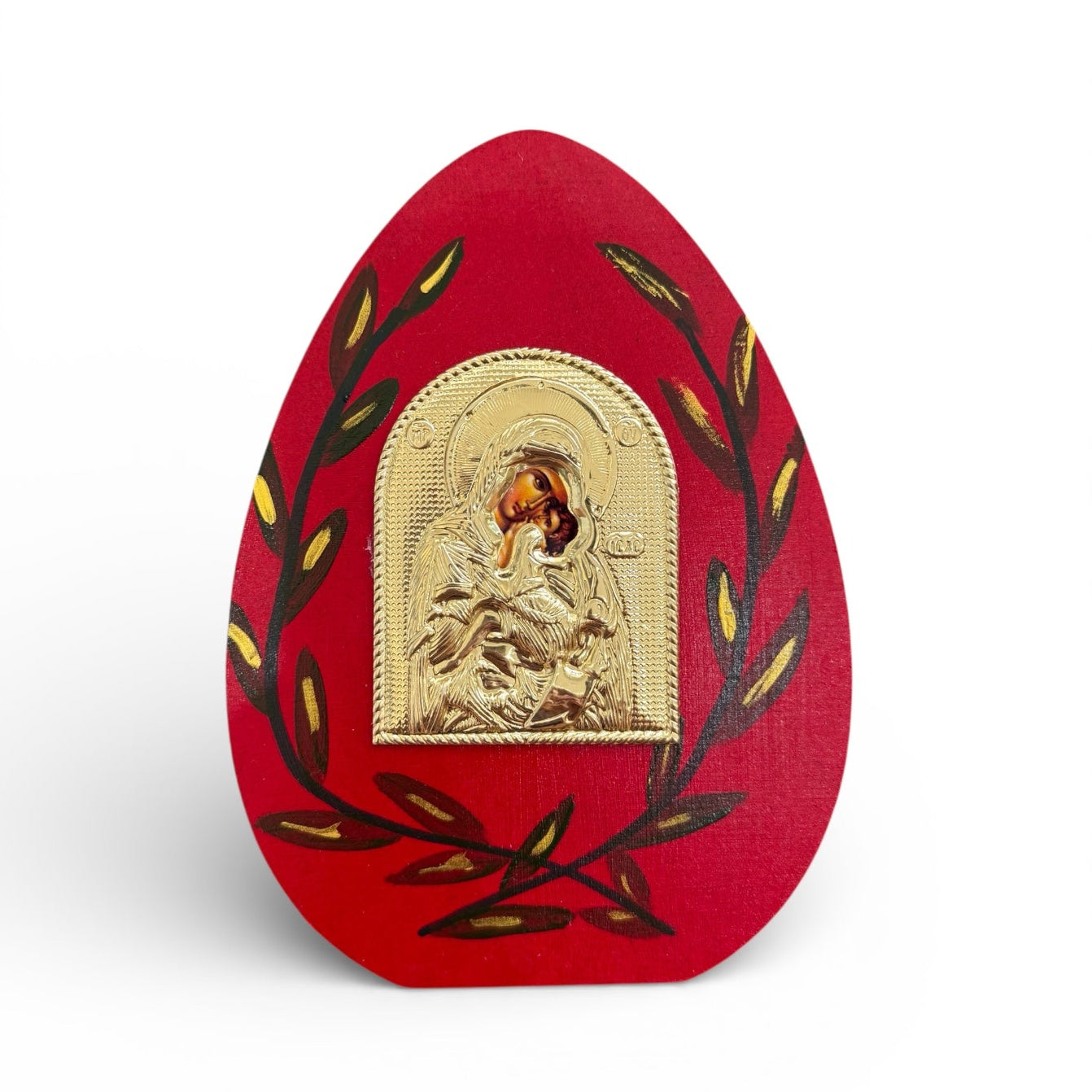 Gold Icon & Olive Leaf Wooden Egg