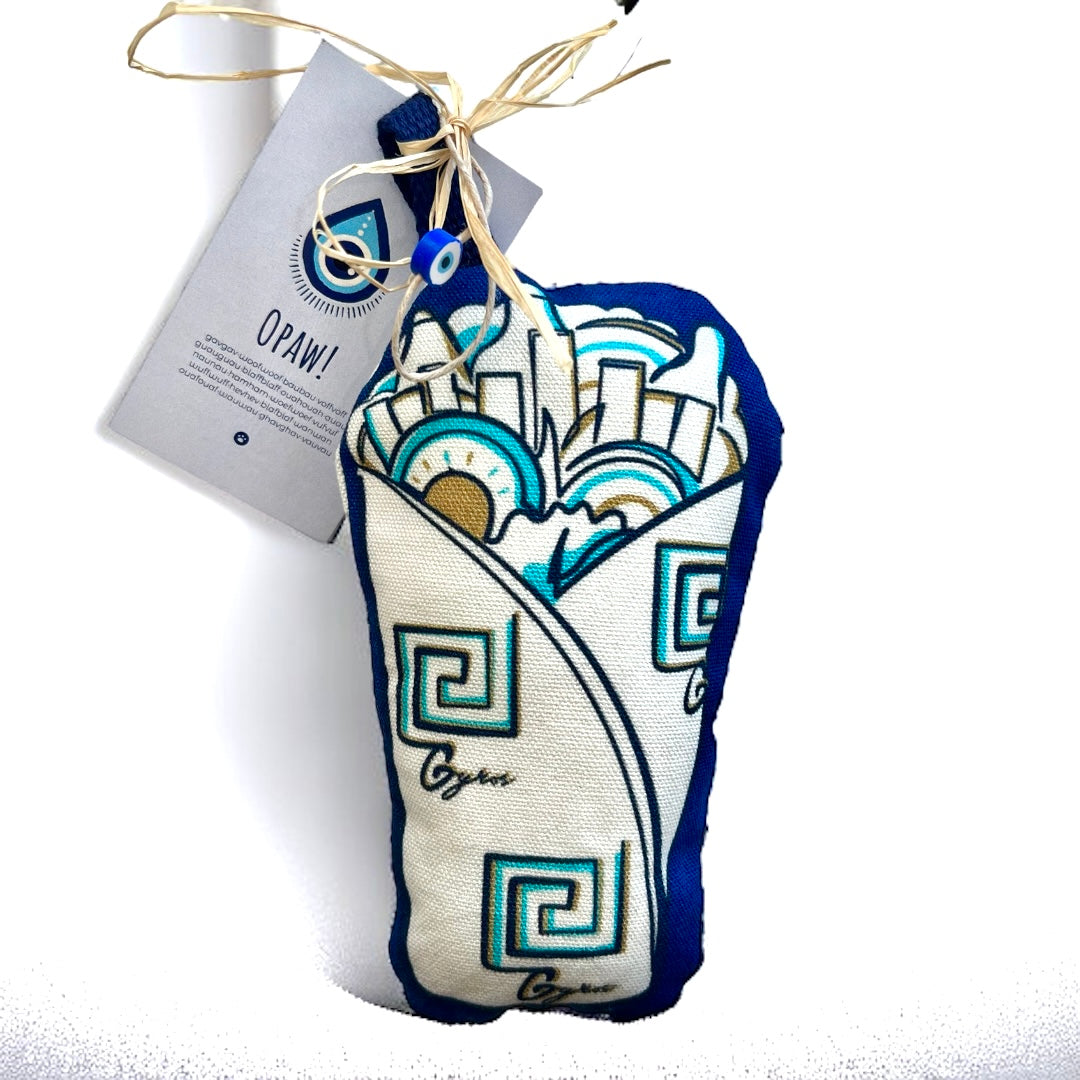 Handmade in Canada with love from Greece, designed with your dog in mind using high-quality materials and squeaky button inside.