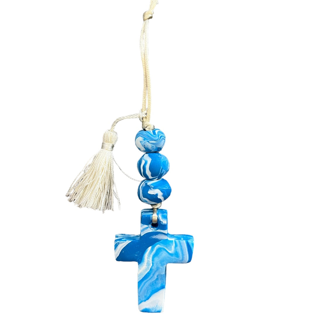 Marbled Blue Clay Cross Ornament
