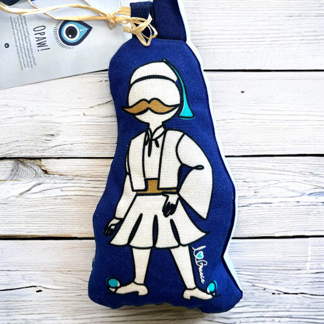 Handmade in Canada with love from Greece, designed with your dog in mind using high-quality materials and squeaky button inside.