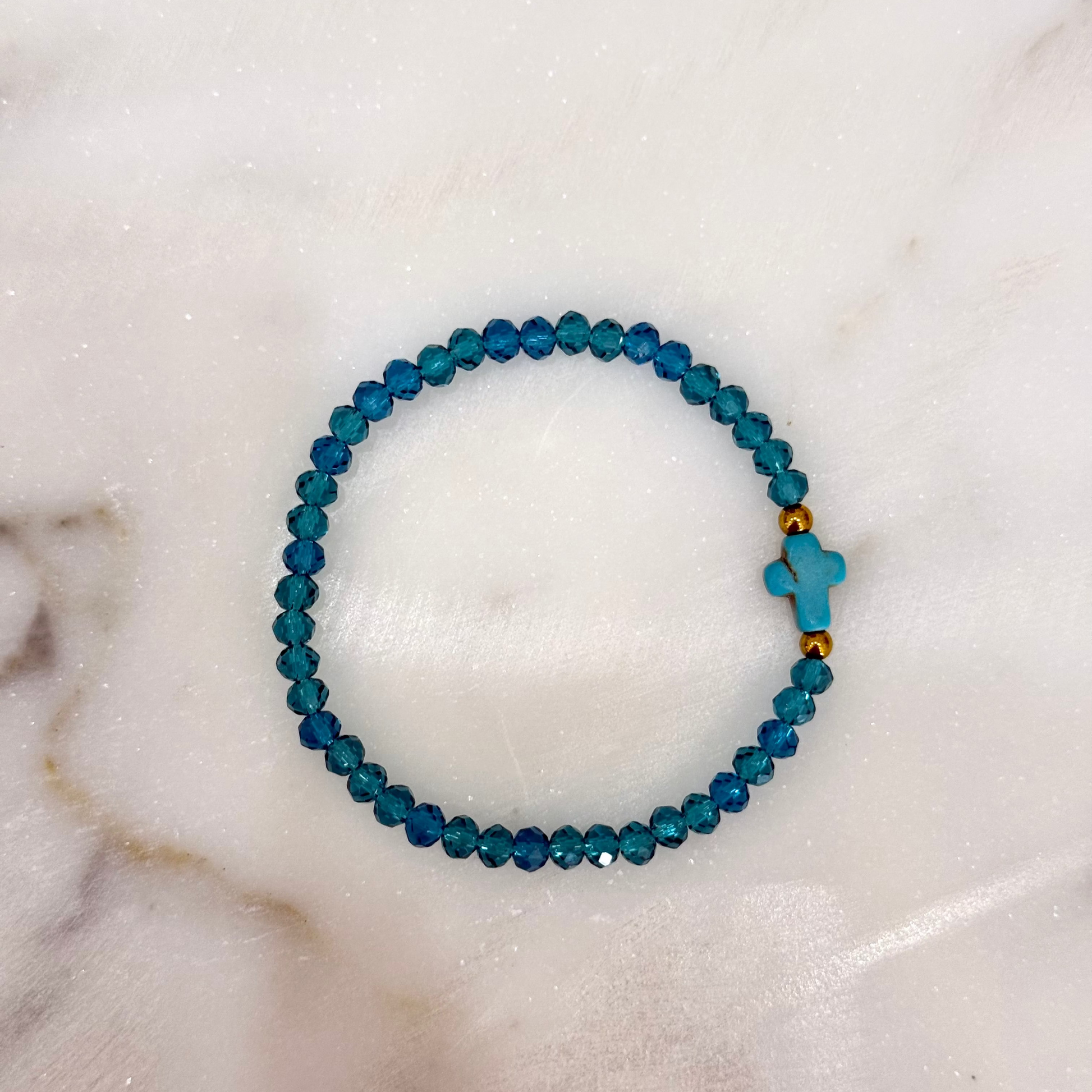 The Turquoise Cross Beaded Crystal Bracelet features a unique design that combines a turquoise cross and crystal beads. This bracelet not only serves as an accessory but may also promote a sense of peace and grounding, as turquoise is traditionally associated with healing properties. Its aesthetic versatility allows it to complement various styles.